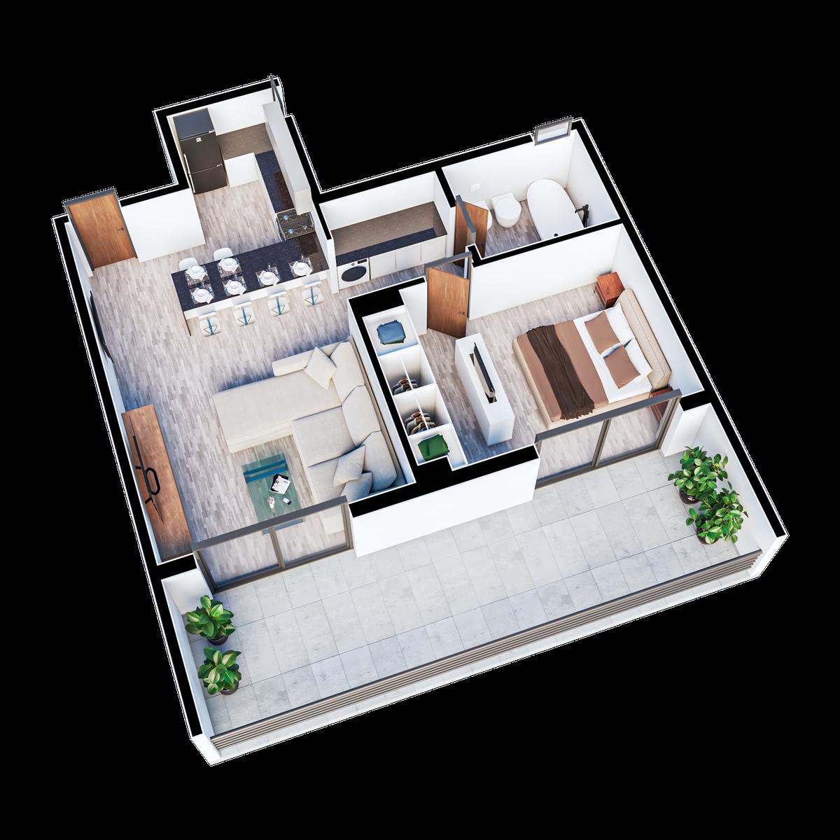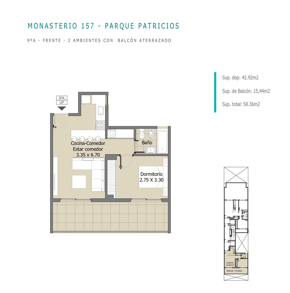 • Monoambientes desde 33.55 m2 totales hasta 59 m2 totales