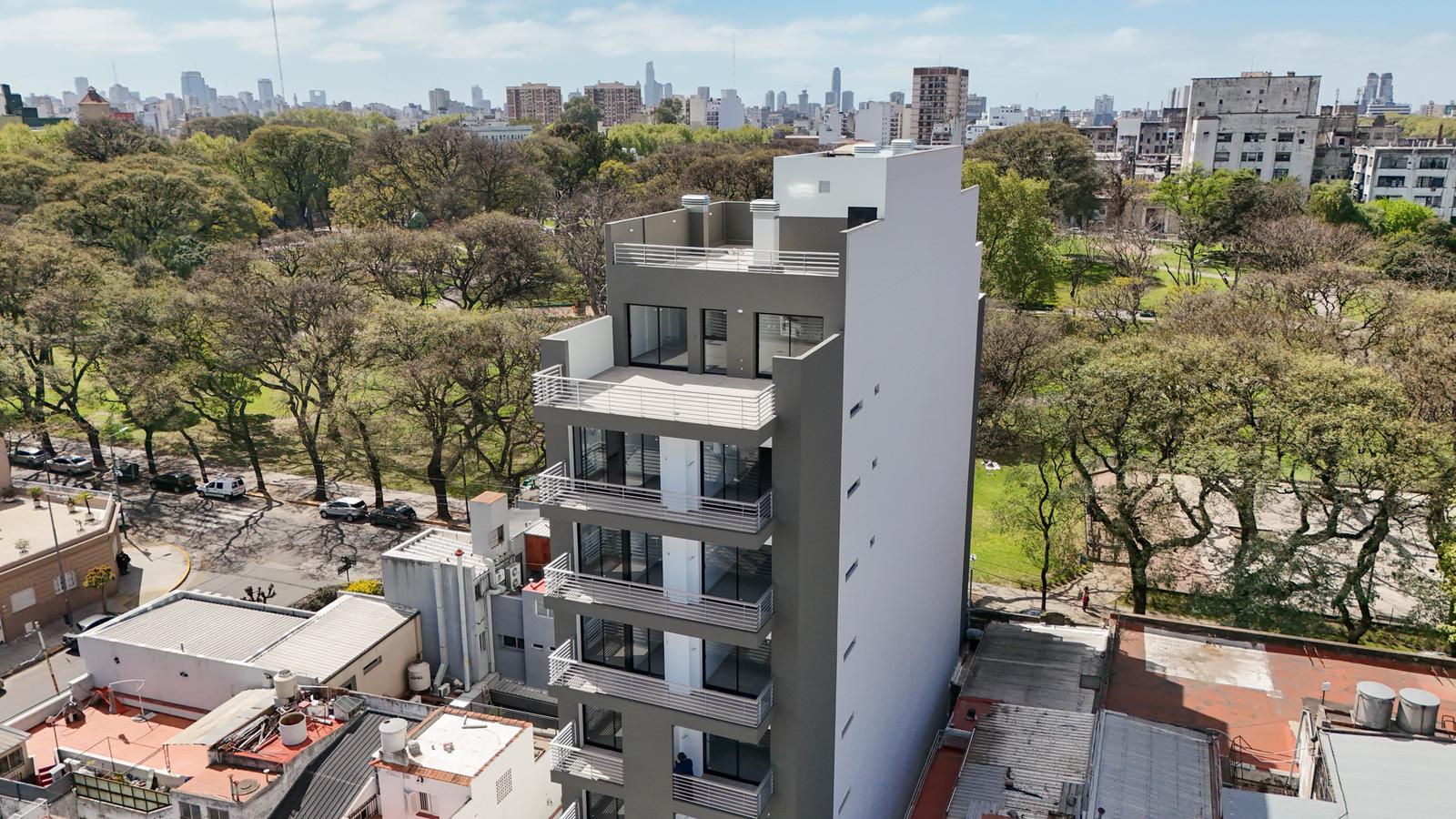 Edificio ubicado frente al Parque Florentino Ameghino, un singular pulmón verde urbano, desde donde se aprecian 46 622 M2 de espacios verdes y frondosas arboledas que transmiten esa sensación de paz y tranquilidad que solo la naturaleza te brinda.