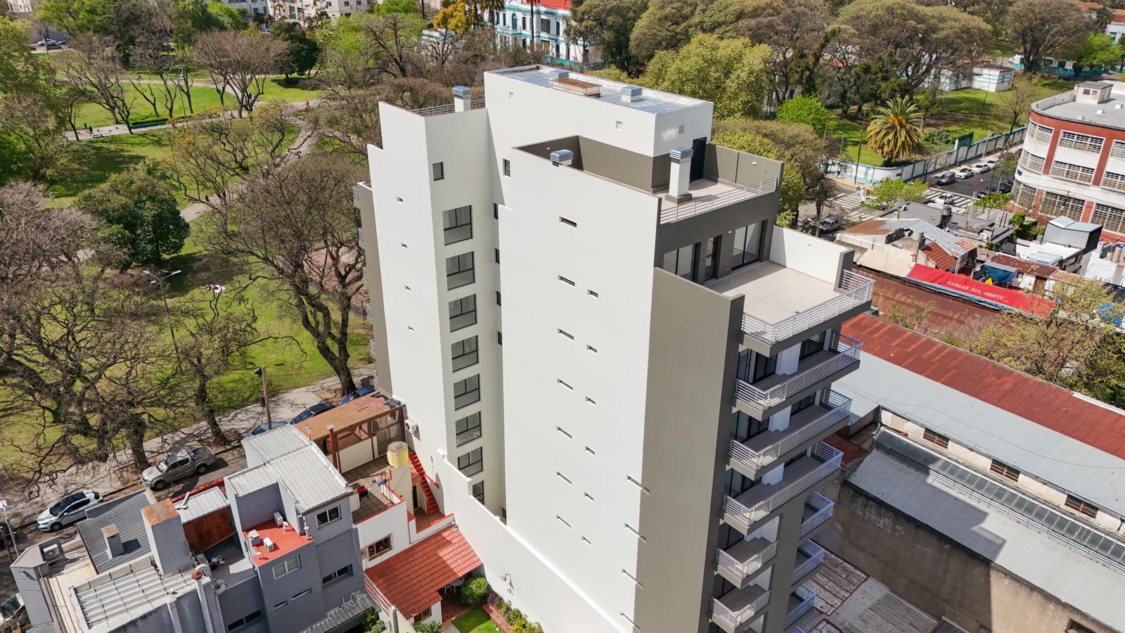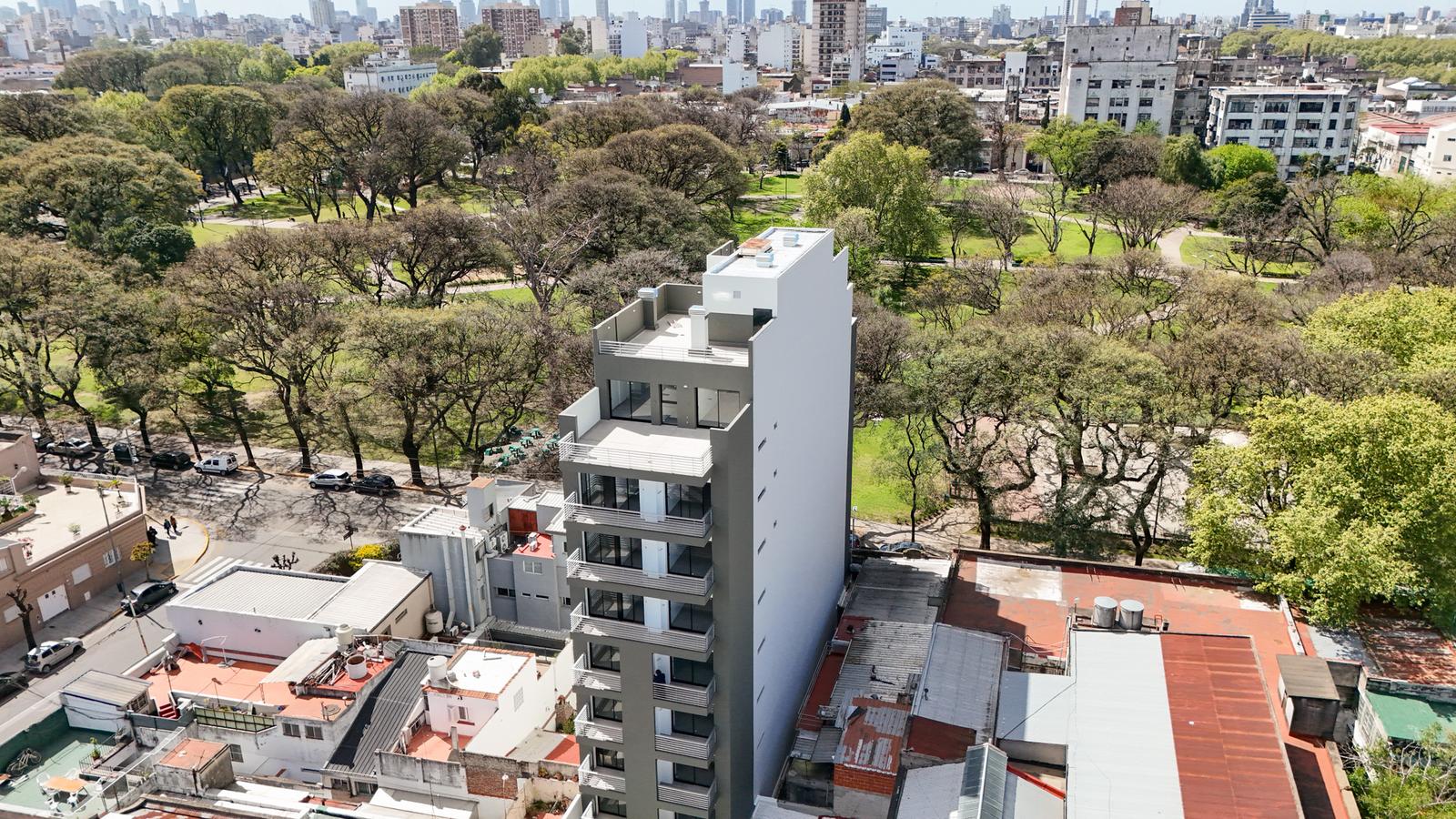 Edificio ubicado frente al Parque Florentino Ameghino, un singular pulmón verde urbano, desde donde se aprecian 46 622 M2 de espacios verdes y frondosas arboledas que transmiten esa sensación de paz y tranquilidad que solo la naturaleza te brinda