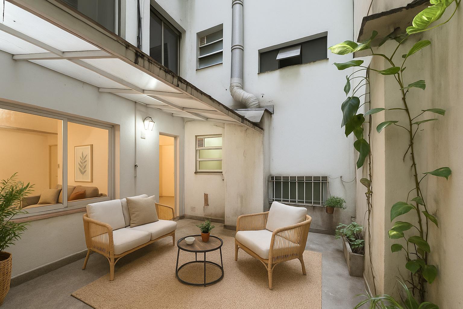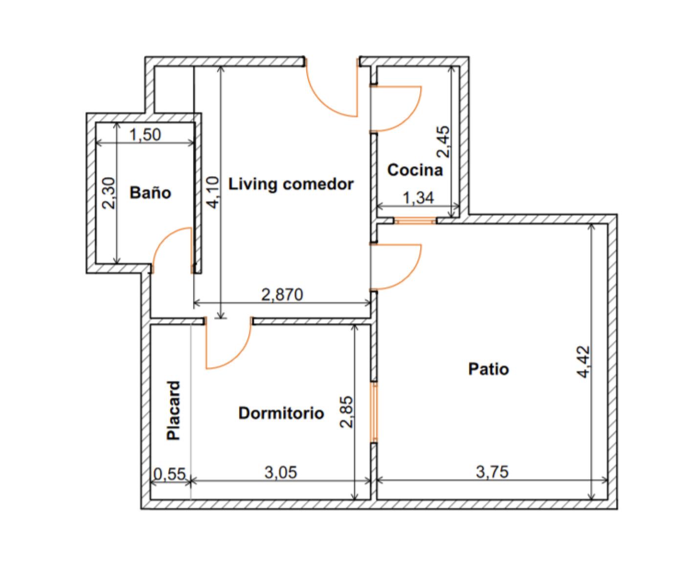 • Living comedor con salida a patio semicubierto de 16 m2 con espacio para lavarropas.