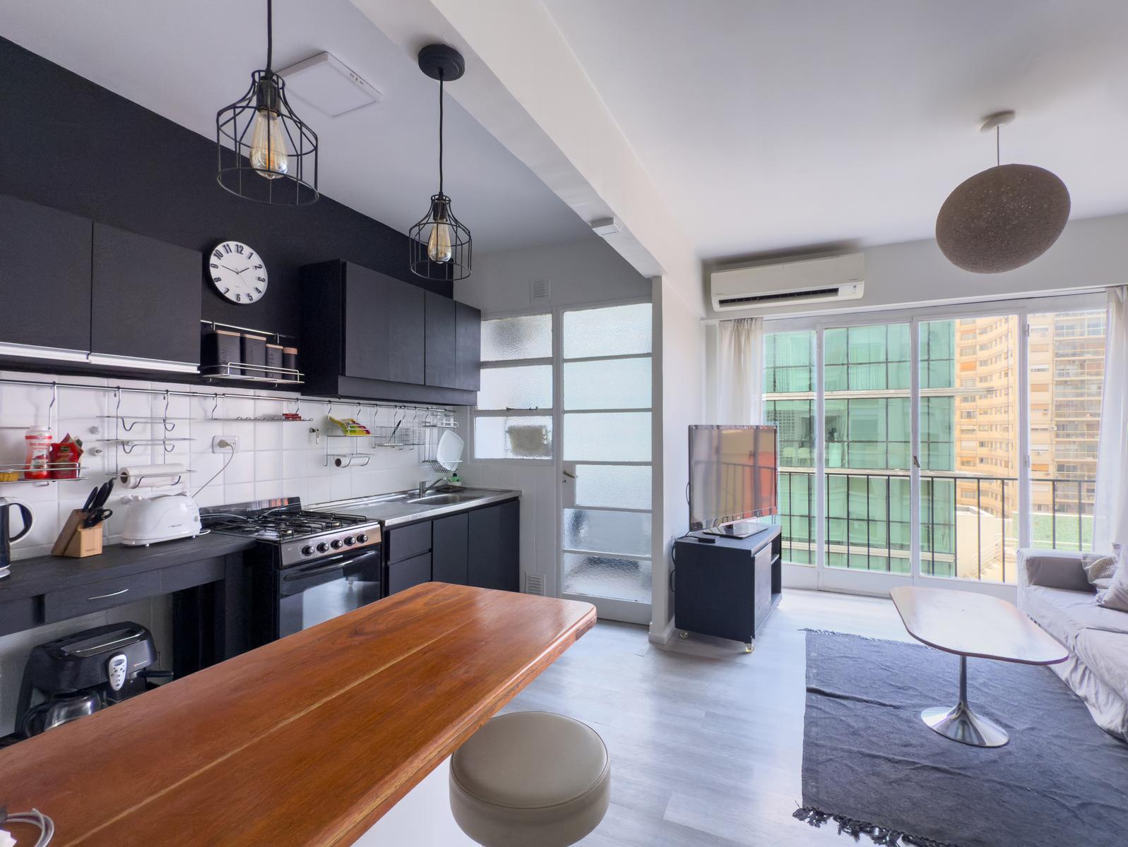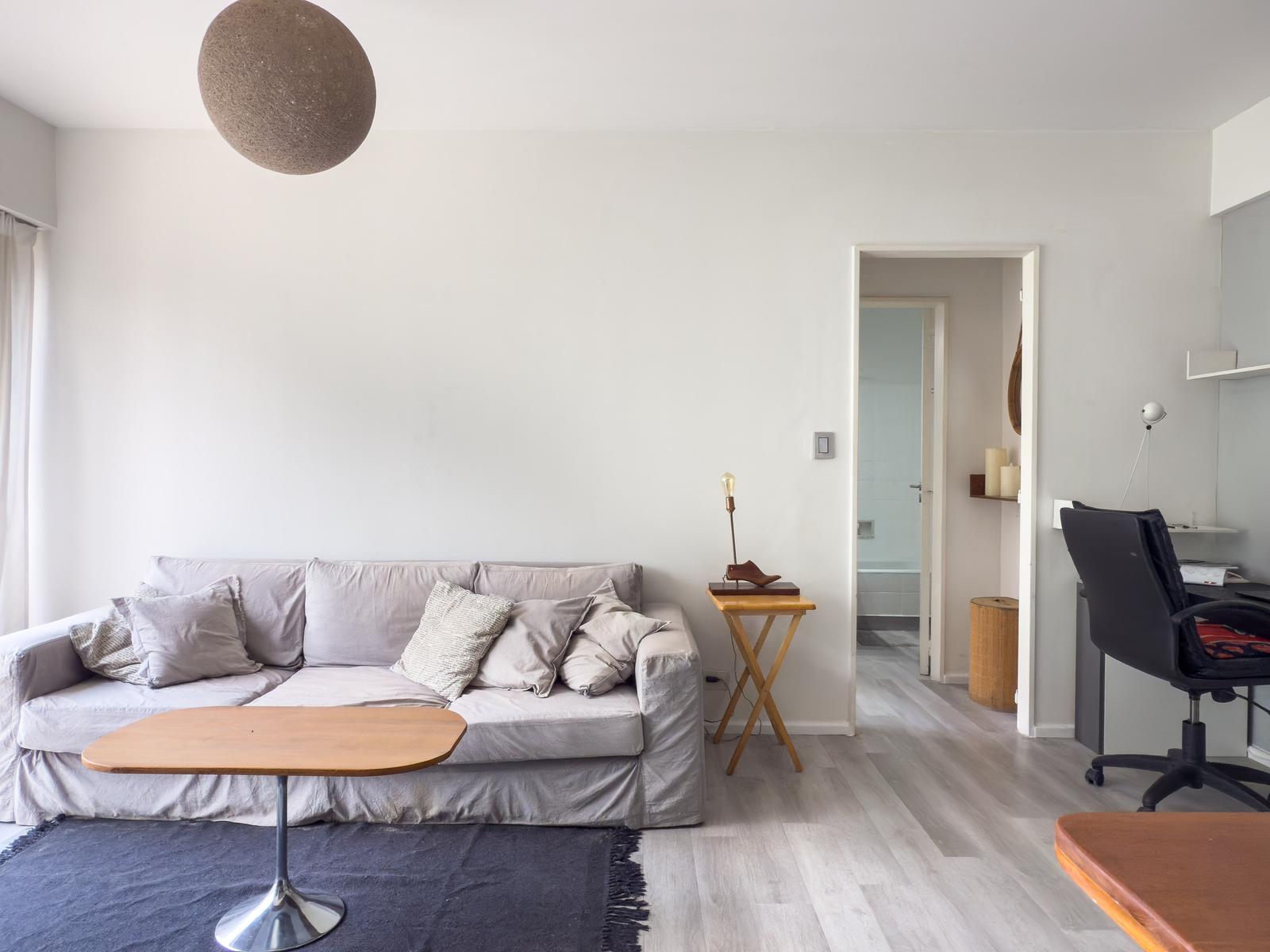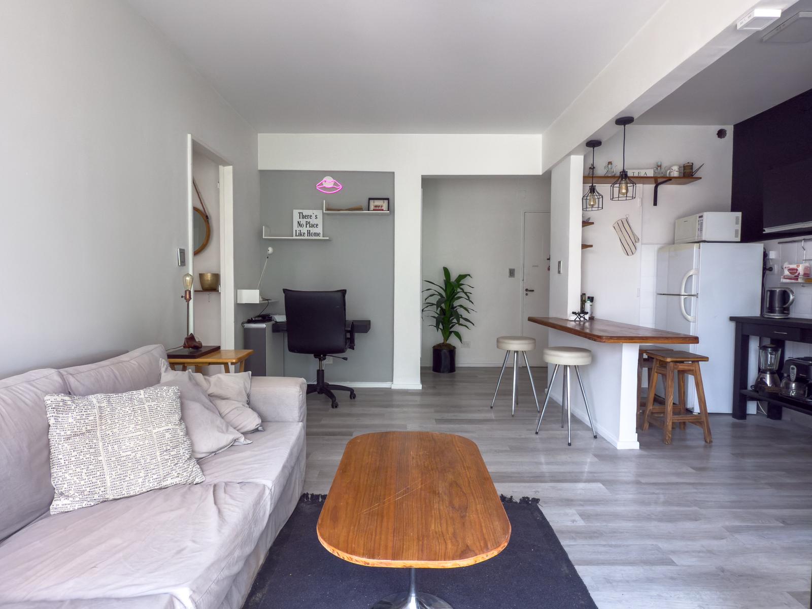 La unidad cuenta con living-comedor cómodo, cocina integrada a gas con un lavadero, dormitorio con buen espacio de guardado y baño completo.