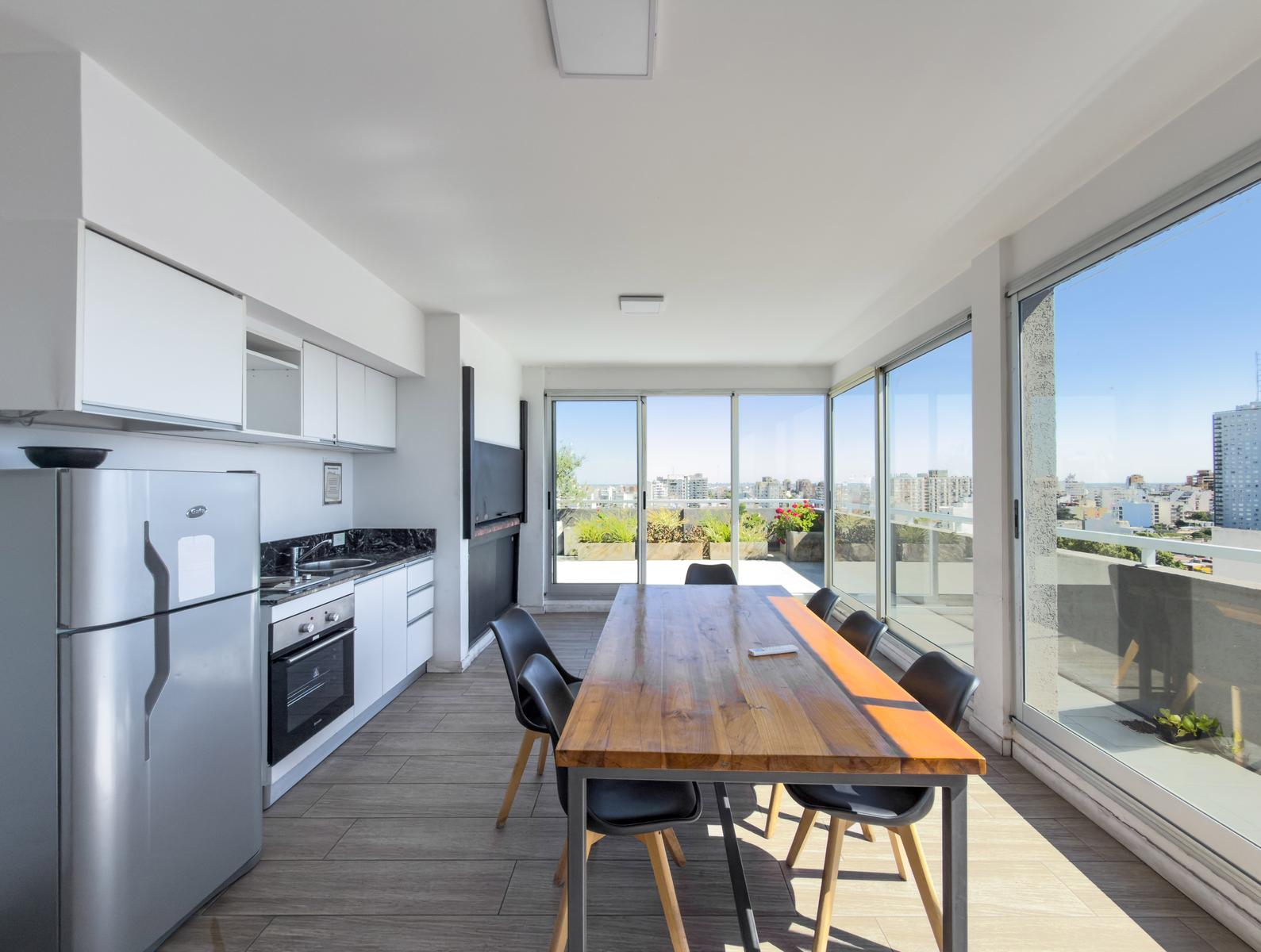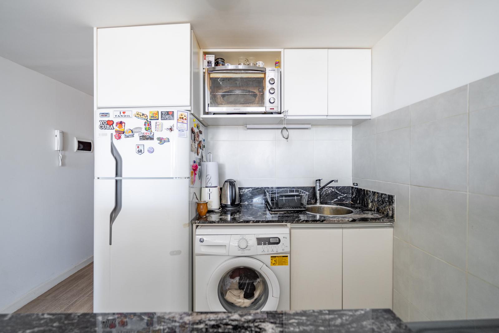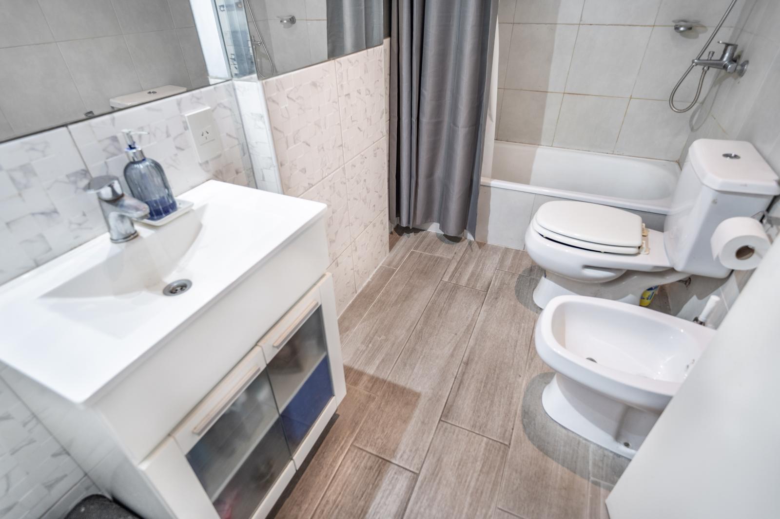 * Cocina amplia y moderna, equipada con barra desayunadora, muebles de guardado y conexión para lavarropas.