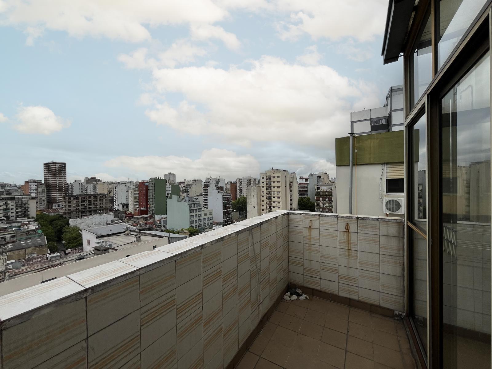 Venta departamento 3 ambientes con balcón aterrazado en excelente estado de mantenimiento ubicación. Ubicado en el piso 11, lo cual otorga vista abierta y ventilación cruzada, se accede mediante un piso por escalera. El edificio posee dos ascensores.