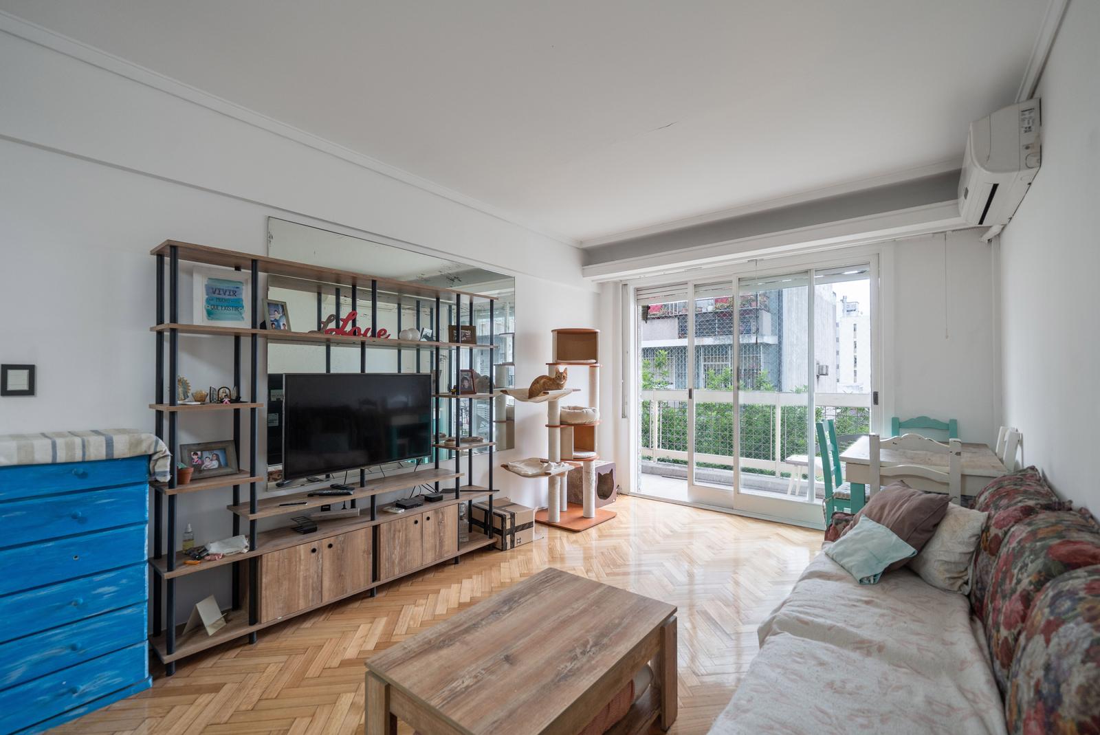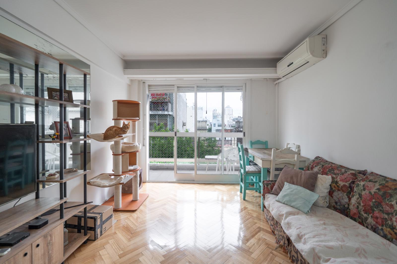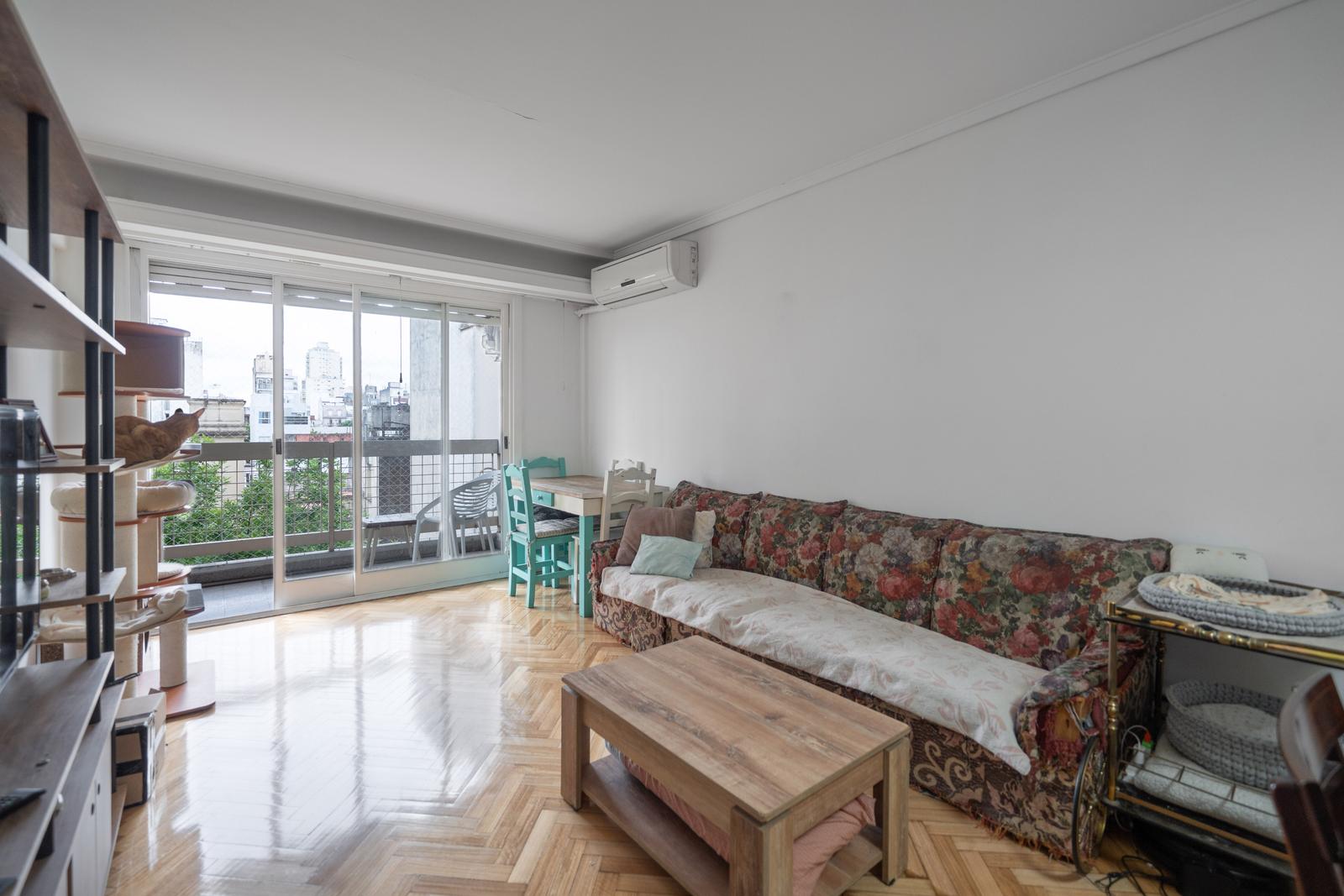 • Living-comedor amplio con salida al balcón y aire acondicionado frío/calor. Piso recientemente pulido. Persiana eléctrica.