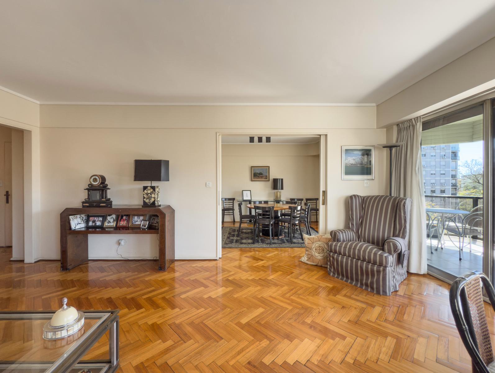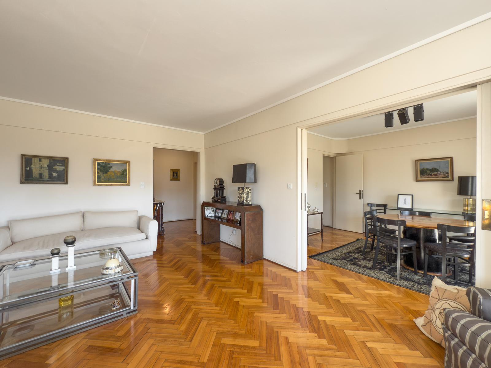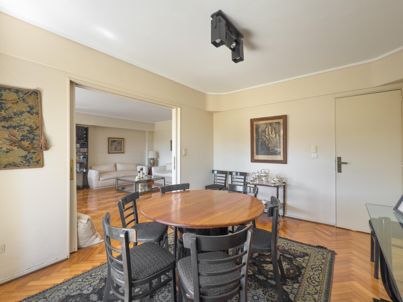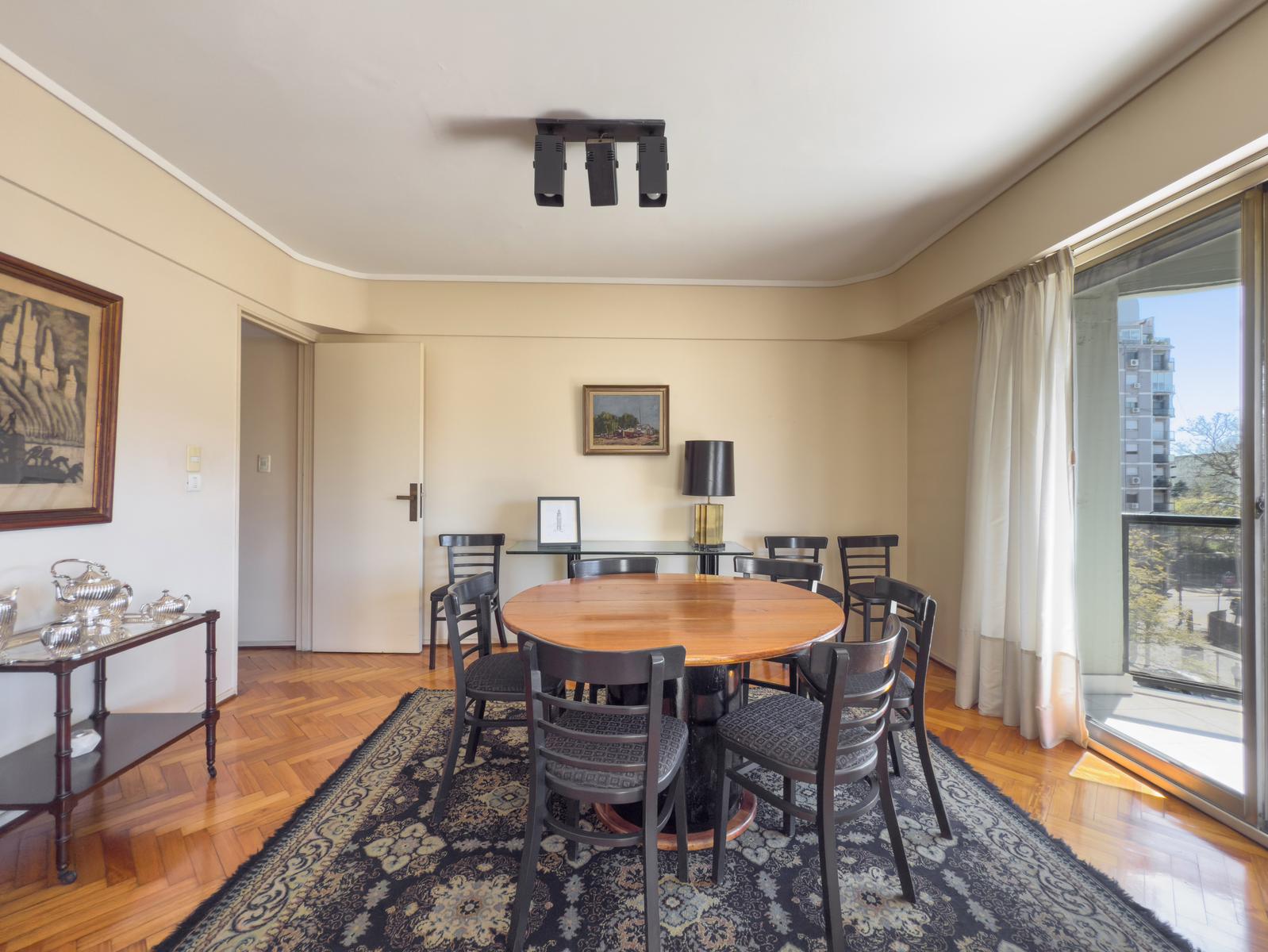 Living amplio con salida al balcón aterrazado que da un luz y un vista excepcional. Comedor formal divido por puerta corrediza.